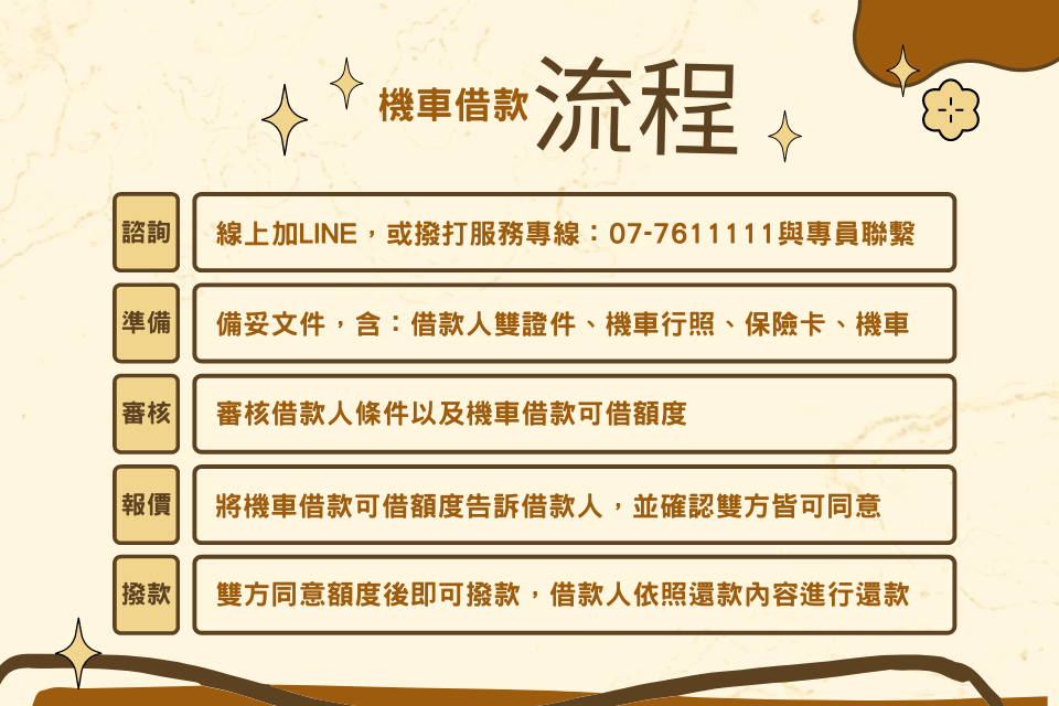 了解更詳細的當鋪機車借款服務,歡迎來電諮詢:07-7611111,或線上加line諮詢昌泰專員